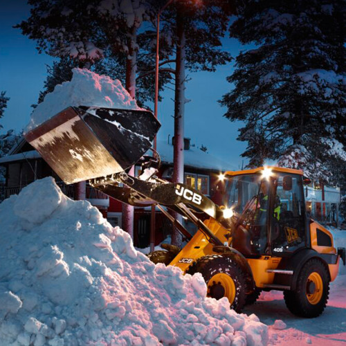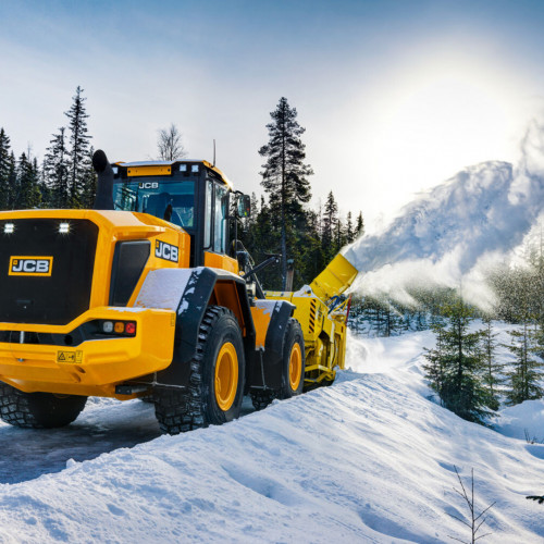 Snežni rinež JCB učinkovito odstranjuje velike količine snega in se lahko uporablja tudi za odstranjevanje odpadkov.